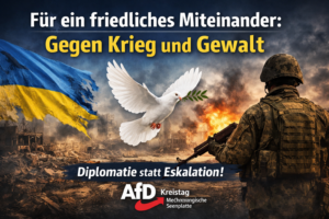 „Frieden entsteht nicht durch Waffenlieferungen, sondern durch Gespräche, Ausgleich und Kompromissbereitschaft“, so die AfD-Fraktion abschließend.