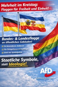 Gleichzeitig weist der Kreistag kritisch darauf hin, dass die derzeitige Beflaggungsverordnung zwar das Hissen ideologisch geprägter Symbolflaggen – wie etwa der Regenbogenflagge – ermöglicht, die Verwendung der hoheitlichen Symbole von Bund und Land jedoch bislang nicht oder nur stark eingeschränkt zulässt.