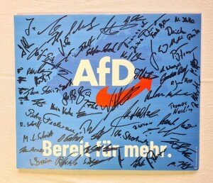 Liebe Freunde, letztes Wochenende hatten wir vom Listenparteitag der AfD in Neubrandenburg berichtet. Dort haben wir von allen AfD-Direktkandidaten und allen AfD-Listenkandidaten für die Landtagswahl in Mecklenburg-Vorpommern am 20. September 2026 sowie von Versammlungsleiter Julian Flak dieses Schild unterschreiben lassen. Nun wollen wir es bei Ebay für einen guten Zweck versteigern.
