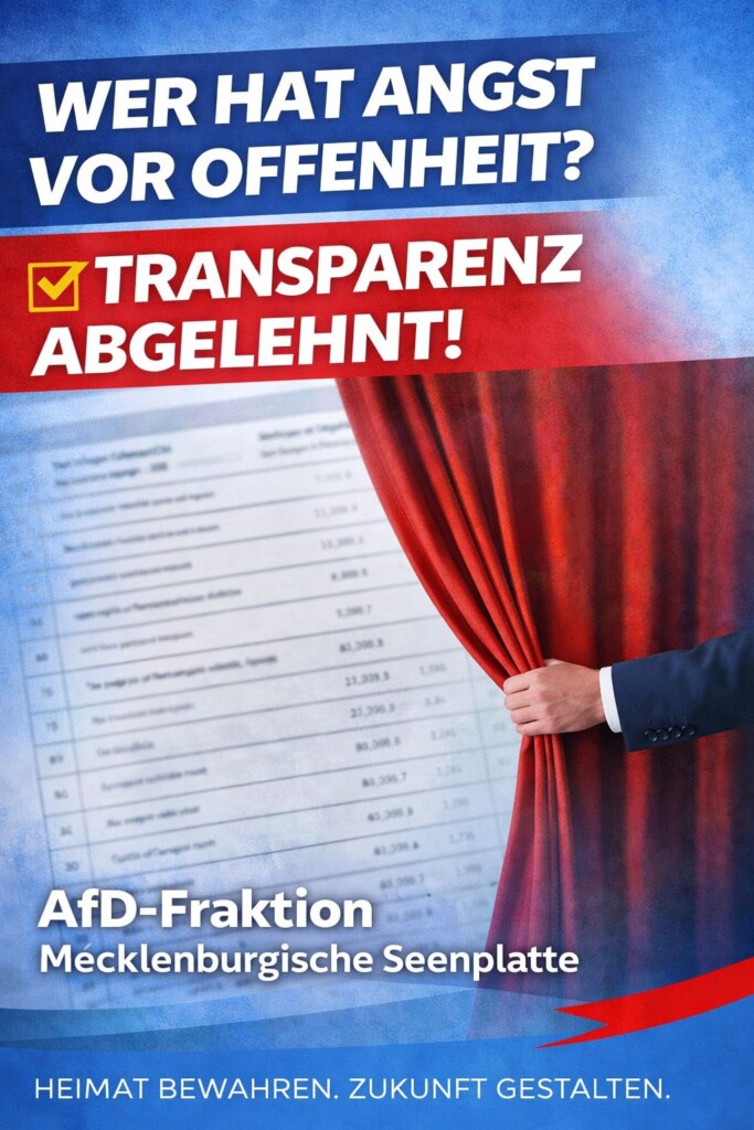 „Dass eine Mehrheit im Kreistag gegen mehr Transparenz stimmt, ist ein fatales Signal an die Bürger“, erklärt die AfD-Fraktion. „Wer nichts zu verbergen hat, sollte auch nichts gegen Offenlegung haben.“