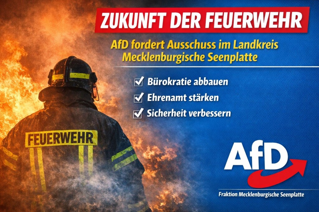 Die AfD-Kreistagsfraktion Mecklenburgische Seenplatte hat zur kommenden Sitzung des Kreistages einen Antrag zur Einsetzung eines zeitweiligen Ausschusses „Zukunft Feuerwehr“ eingebracht.